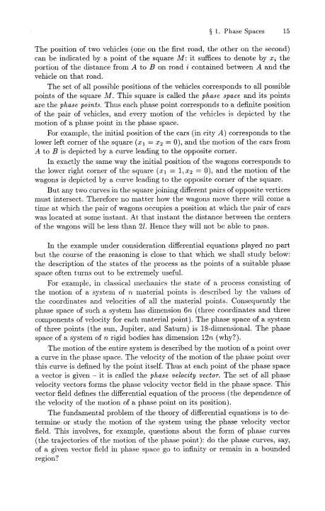 There are dozens of books on ODEs, but none with the elegant geometric insight of Arnol'd's book. Arnol'd puts a clear emphasis on the qualitative and geometric properties of ODEs and their solutions, rather than on the routine presentation of algorithms for solving special classes of equations. Of course, the reader learns how to solve equations, but with much more understanding of the systems, the solutions and the techniques. Vector fields and one-parameter groups of transformations come right from the start and Arnol'd uses this "language" throughout the book. This fundamental difference from the standard presentation allows him to explain some of the real mathematics of ODEs in a very understandable way and without hiding the substance. The text is also rich with examples and connections with mechanics. Where possible, Arnol'd proceeds by physical reasoning, using it as a convenient shorthand for much longer formal mathematical reasoning. This technique helps the student get a feel for the subject. Following Arnol'd's guiding geometric and qualitative principles, there are 272 figures in the book, but not a single complicated formula. Also, the text is peppered with historical remarks, which put the material in context, showing how the ideas have developed since Newton and Leibniz. This book is an excellent text for a course whose goal is a mathematical treatment of differential equations and the related physical systems.