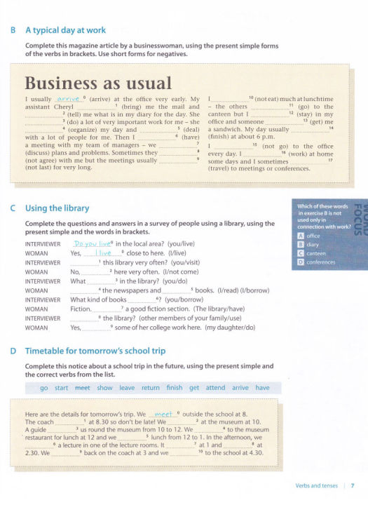 * Упражнения в контексте, студенты практикуют использование грамматики в повседневных ситуациях.