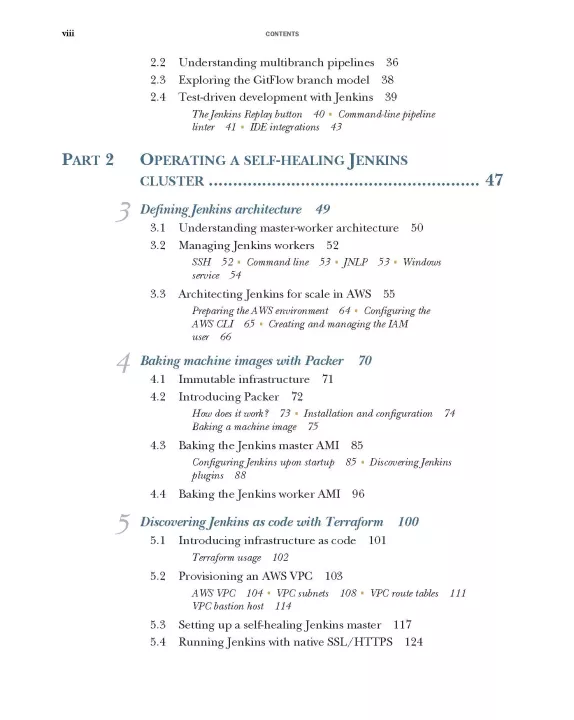 In Pipeline as Code you’ll learn to build reliable CI/CD pipelines for cloud-native applications. With Jenkins as the backbone, you’ll programmatically control all the pieces of your pipeline via modern APIs. Hands-on examples include building CI/CD workflows for distributed Kubernetes applications, and serverless functions. By the time you’re finished, you’ll be able to swap manual UI-based adjustments with a fully automated approach!