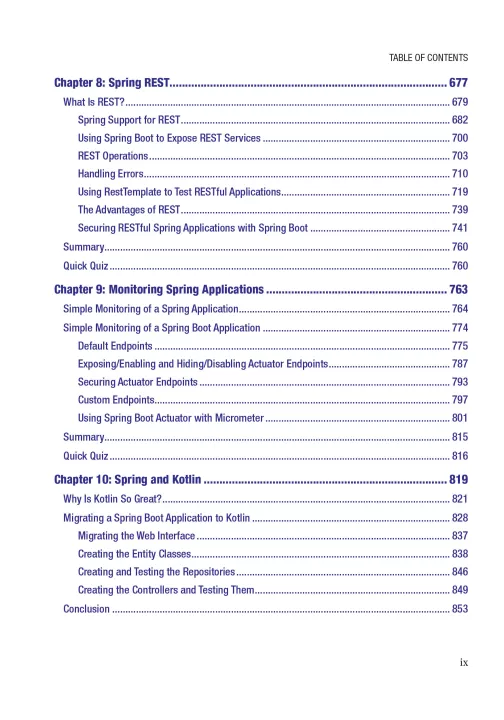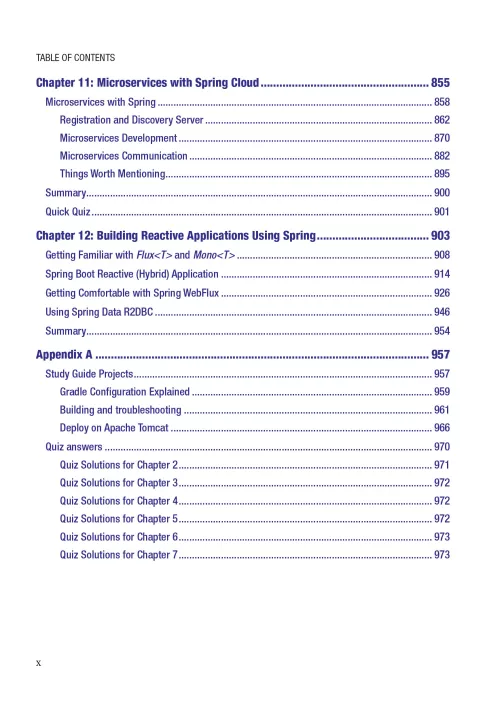 Pass the Pivotal Certified Professional exam for Core Spring, based on the latest Spring Framework 5, using source code examples, study summaries, and mock exams. This book now includes WebFlux, reactive programming, and more found in Spring 5. You'll find a descriptive overview of certification-related Spring modules and a single example application demonstrating the use of all required Spring modules.