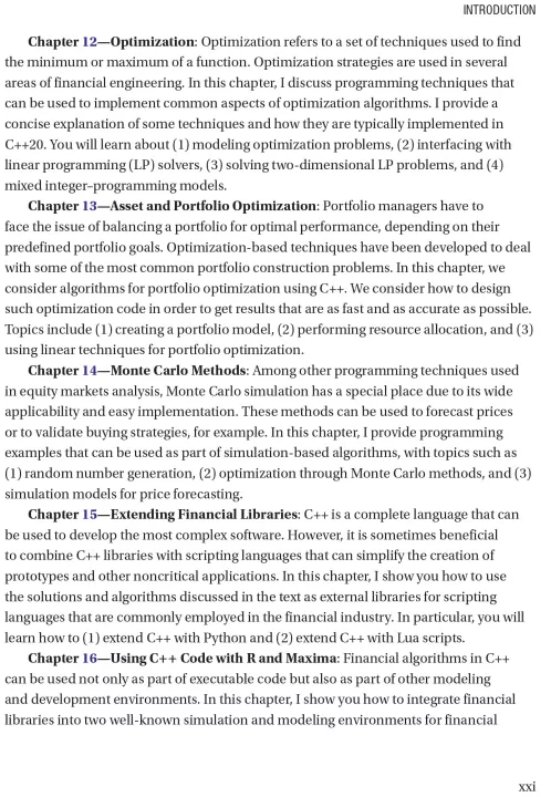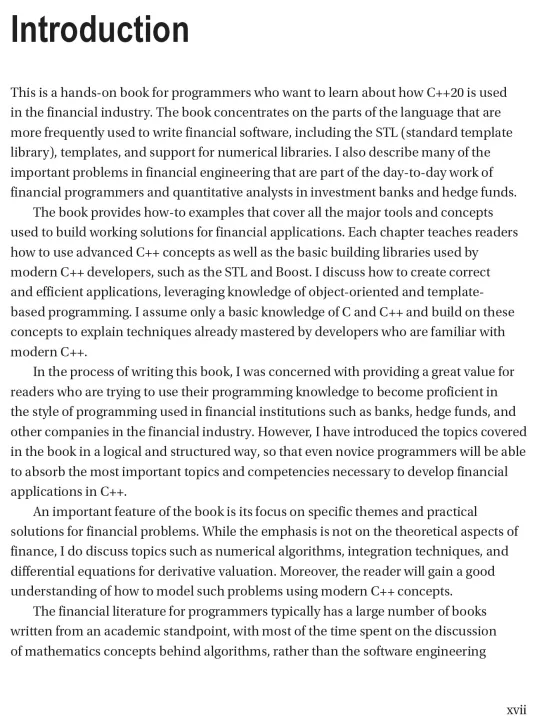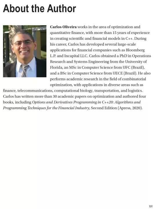 Apply C++ to programming problems in the financial industry using this hands-on book, updated for C++20. It explains those aspects of the language that are more frequently used in writing financial software, including the Standard Template Library (STL), templates, and various numerical libraries. Practical C++20 Financial Programming also describes many of the important problems in financial engineering that are part of the day-to-day work of financial programmers in large investment banks and hedge funds. The author has extensive experience in the New York City financial industry that is now distilled into this handy guide.