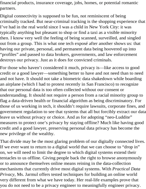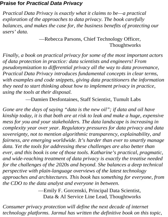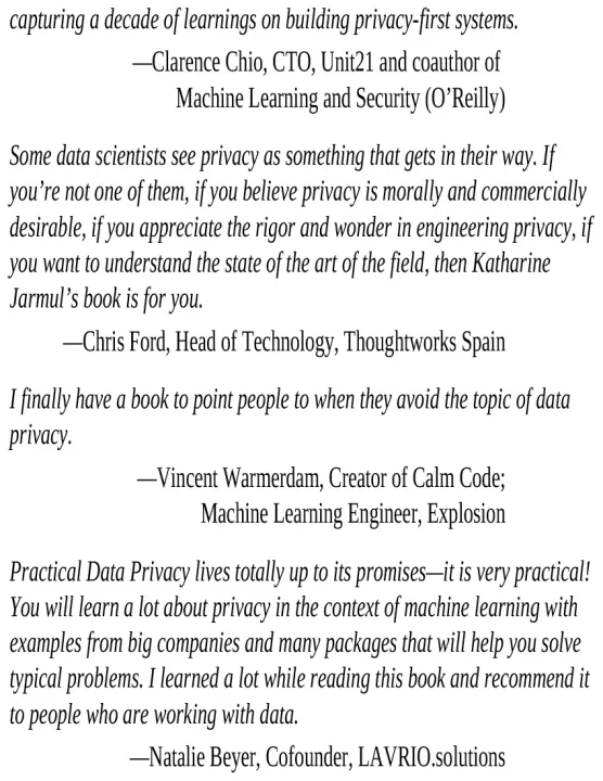 Between major privacy regulations like the GDPR and CCPA and expensive and notorious data breaches, there has never been so much pressure to ensure data privacy. Unfortunately, integrating privacy into data systems is still complicated. This essential guide will give you a fundamental understanding of modern privacy building blocks, like differential privacy, federated learning, and encrypted computation. Based on hard-won lessons, this book provides solid advice and best practices for integrating breakthrough privacy-enhancing technologies into production systems.