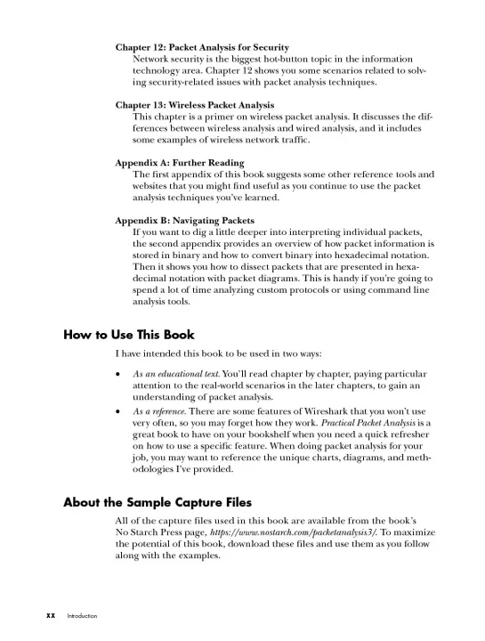Updated to cover Wireshark 2.x, the third edition of Practical Packet Analysis will teach you to make sense of your packet captures so that you can better troubleshoot network problems. You’ll find added coverage of IPv6 and SMTP, a new chapter on the powerful command line packet analyzers tcpdump and TShark, and an appendix on how to read and reference packet values using a packet map.