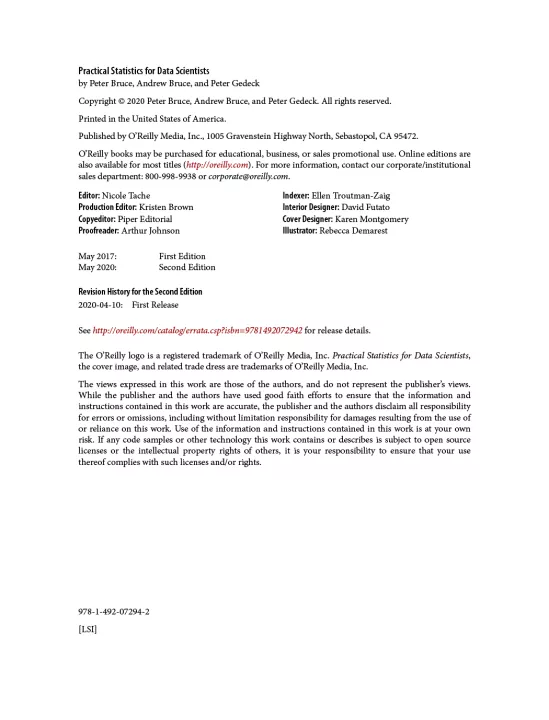 Statistical methods are a key part of data science, yet few data scientists have formal statistical training. Courses and books on basic statistics rarely cover the topic from a data science perspective. The second edition of this popular guide adds comprehensive examples in Python, provides practical guidance on applying statistical methods to data science, tells you how to avoid their misuse, and gives you advice on what’s important and what’s not.