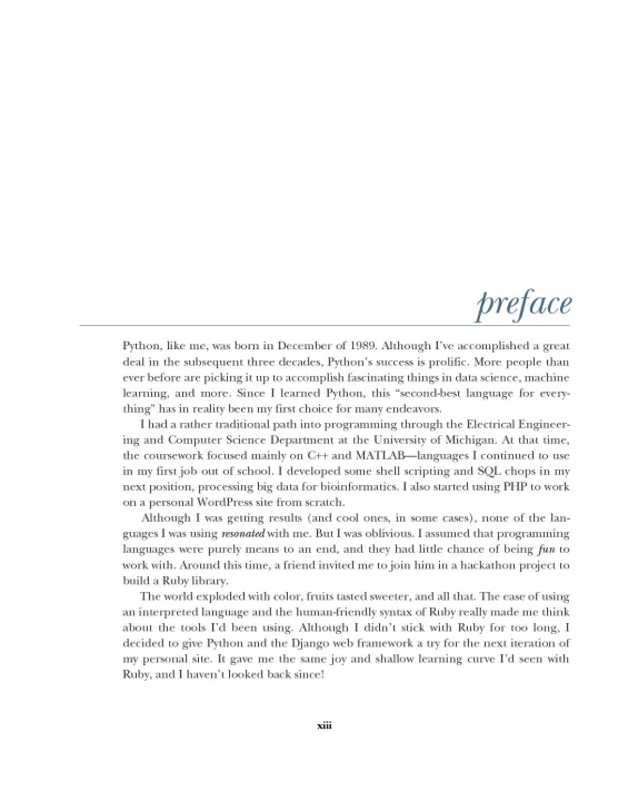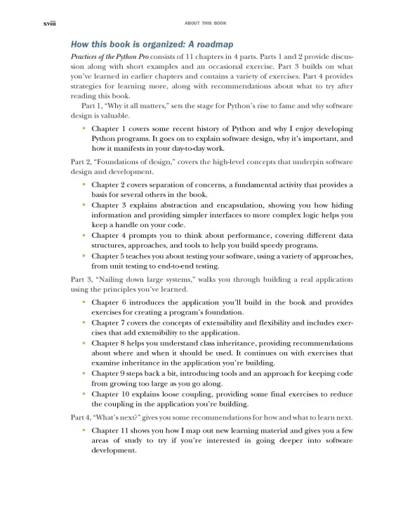 Professional-quality code does more than just run without bugs. It's clean, readable, and easy to maintain. To step up from a capable Python coder to a professional developer, you need to learn industry standards for coding style, application design, and development process. That’s where this book is indispensable. Practices of the Python Pro teaches you to design and write professional-quality software that’s understandable,