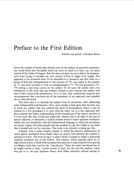 Reviews from the First Edition: "An excellent text … The postulates of quantum mechanics and the mathematical underpinnings are discussed in a clear, succinct manner." (American Scientist) "No matter how gently one introduces students to the concept of Dirac’s bras and kets, many are turned off. Shankar attacks the problem head-on in the first chapter, and in a very informal style suggests that there is nothing to be frightened of." (Physics Bulletin) Reviews of the Second Edition: "This massive text of 700 and odd pages has indeed an excellent get-up, is very verbal and expressive, and has extensively worked out calculational details---all just right for a first course. The style is conversational, more like a corridor talk or lecture notes, though arranged as a text. … It would be particularly useful to beginning students and those in allied areas like quantum chemistry." (Mathematical Reviews) R. Shankar has introduced major additions and updated key presentations in this second edition of Principles of Quantum Mechanics. New features of this innovative text include an entirely rewritten mathematical introduction, a discussion of Time-reversal invariance, and extensive coverage of a variety of path integrals and their applications. Additional highlights include: - Clear, accessible treatment of underlying mathematics - A review of Newtonian, Lagrangian, and Hamiltonian mechanics - Student understanding of quantum theory is enhanced by separate treatment of mathematical theorems and physical postulates - Unsurpassed coverage of path integrals and their relevance in contemporary physics The requisite text for advanced undergraduate- and graduate-level students, Principles of Quantum Mechanics, Second Edition is fully referenced and is supported by many exercises and solutions. The book’s self-contained chapters also make it suitable for independent study as well as for courses in applied disciplines.