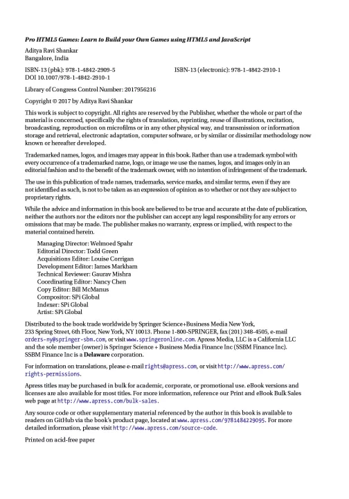 This new and fully updated second edition now includes chapters on mobile game development and an essential game developer's toolkit. Understand how to develop complex, bolder games and become an HTML5 games pro using Pro HTML5 Games today.