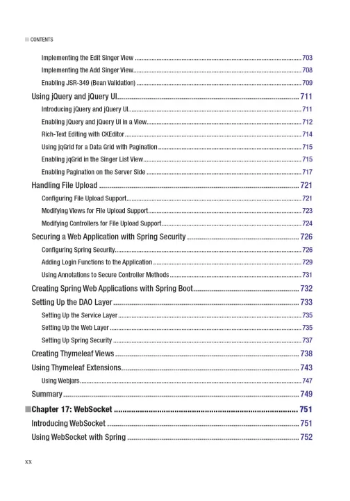 Master Spring basics and core topics, and share the authors’ insights and real–world experiences with remoting, Hibernate, and EJB. Beyond the basics, you'll learn how to leverage the Spring Framework to build the various tiers and parts of an enterprise Java application: transactions, web and presentation tiers, deployment, and much more. A full sample application allows you to apply many of the technologies and techniques covered in Pro Spring 5 and see how they work together.