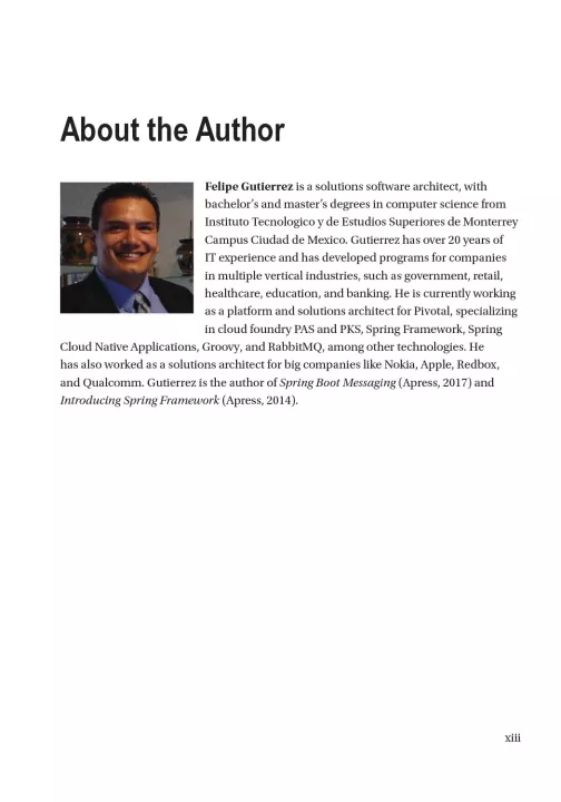 This book is your authoritative hands-on practical guide for increasing your enterprise Java and cloud application productivity while decreasing development time. It's a no nonsense guide with case studies of increasing complexity throughout the book. The author, a senior solutions architect and Principal Technical instructor with Pivotal, the company behind the Spring Framework, shares his experience, insights and first-hand knowledge about how Spring Boot technology works and best practices.