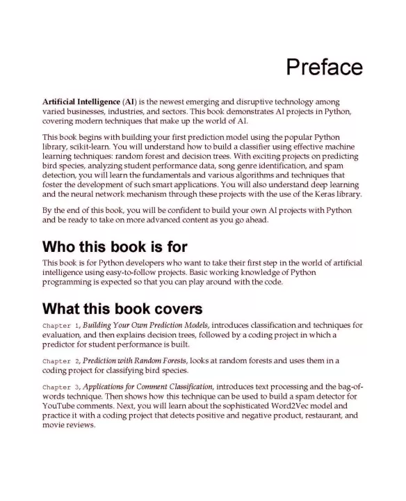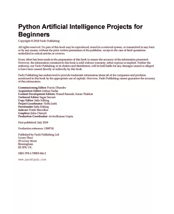Artificial Intelligence (AI) is the newest technology that’s being employed among varied businesses, industries, and sectors. Python Artificial Intelligence Projects for Beginners demonstrates AI projects in Python, covering modern techniques that make up the world of Artificial Intelligence.