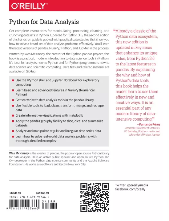 Get complete instructions for manipulating, processing, cleaning, and crunching datasets in Python. Updated for Python 3.6, the second edition of this hands-on guide is packed with practical case studies that show you how to solve a broad set of data analysis problems effectively. You’ll learn the latest versions of pandas, NumPy, IPython, and Jupyter in the process.