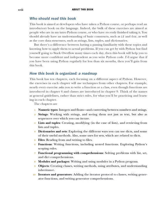 Readers will not only tackle exercises using built-in data structures, but also more advanced techniques, such as functional programming, object-oriented programming, iterators, and generators. With each engaging challenge, readers will practice a new skill and learn how to apply it to everyday coding tasks.