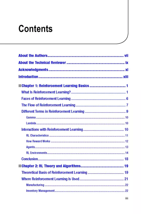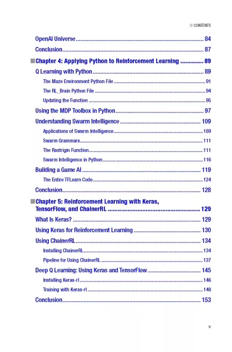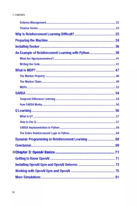 Reinforcement Learning discusses algorithm implementations important for reinforcement learning, including Markov’s Decision process and Semi Markov Decision process. The next section shows you how to get started with Open AI before looking at Open AI Gym. You’ll then learn about Swarm Intelligence with Python in terms of reinforcement learning. The last part of the book starts with the TensorFlow environment and gives an outline of how reinforcement learning can be applied to TensorFlow. There’s also coverage of Keras, a framework that can be used with reinforcement learning. Finally, you'll delve into Google’s Deep Mind and see scenarios where reinforcement learning can be used.