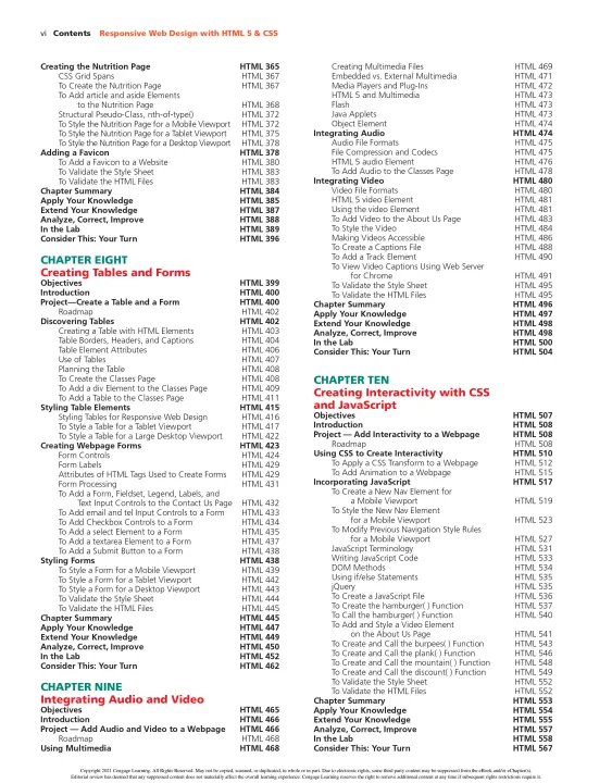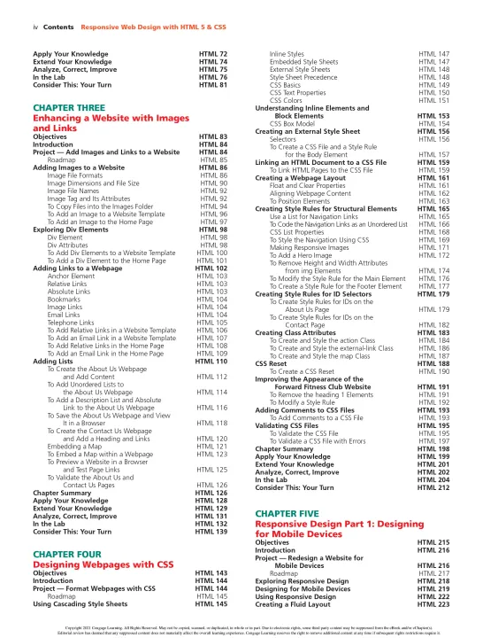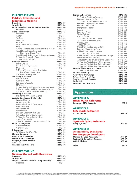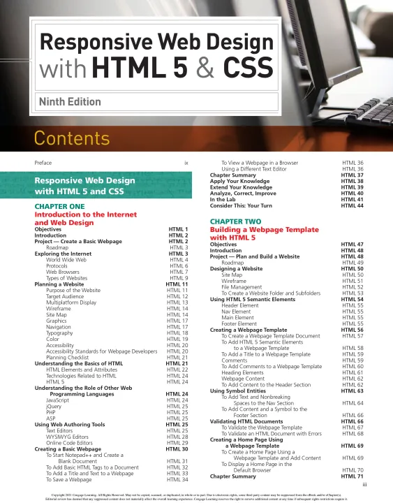 Equipping you with the most up-to-date tools available, Minnick's RESPONSIVE WEB DESIGN WITH HTML 5 & CSS, 9th edition, teaches you step by step how to design professional quality websites that attract and retain customers. Packed with best practices and tips from the pros, the text gives you a solid foundation in HTML, CSS and responsive web design. It shows you how to create one website that automatically adapts to mobile, tablet, laptop and desktop devices as well as large monitors. You will learn how to code a webpage to make a phone call from a mobile device, embed a map, use custom fonts, create shortcut navigation menus, integrate social media to promote a business and more. In addition, you will use popular web framework Bootstrap to create a webpage. Also available: MindTap digital learning solution.