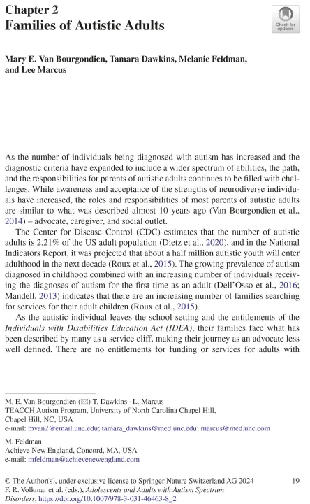 epidemiology, the impact of ASD on families. The book focuses on areas