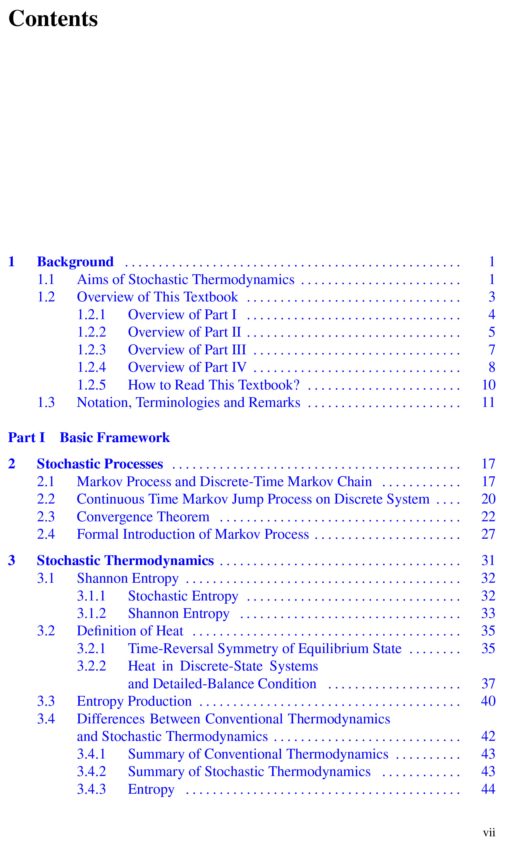 This book presents the fundamentals of stochastic thermodynamics, one of the most central subjects in non-equilibrium statistical mechanics. It also explores many recent advances, e.g., in information thermodynamics, the thermodynamic uncertainty relation, and the trade-off relation between efficiency and power. The content is divided into three main parts, the first of which introduces readers to fundamental topics in stochastic thermodynamics, e.g., the basics of stochastic processes, the fluctuation theorem and its variants, information thermodynamics, and large deviation theory. In turn, parts two and three explore advanced topics such as autonomous engines (engines not controlled externally) and finite speed engines, while also explaining the key concepts from recent stochastic thermodynamics theory that are involved. To fully benefit from the book, readers only need an undergraduate-level background in statistical mechanics and quantum mechanics; no background in information theory or stochastic processes is needed. Accordingly, the book offers a valuable resource for early graduate or higher-level readers who are unfamiliar with this subject but want to keep up with the cutting-edge research in this field. In addition, the author’s vivid descriptions interspersed throughout the book will help readers grasp ‘living’ research developments and begin their own research in this field.