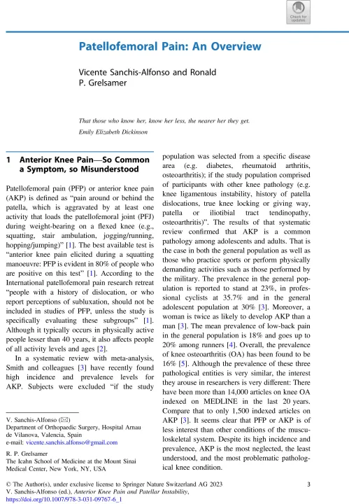and many other hot topics in the field. Anterior Knee Pain and Patellar