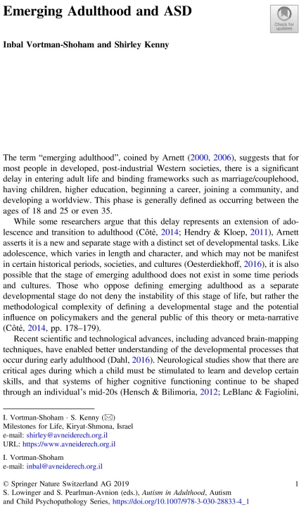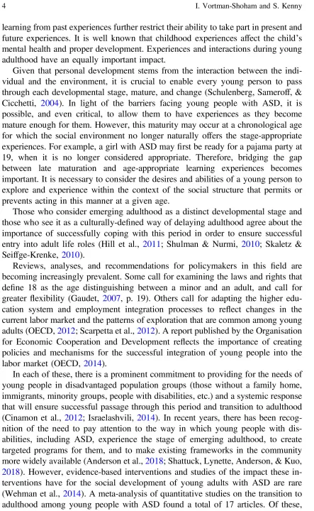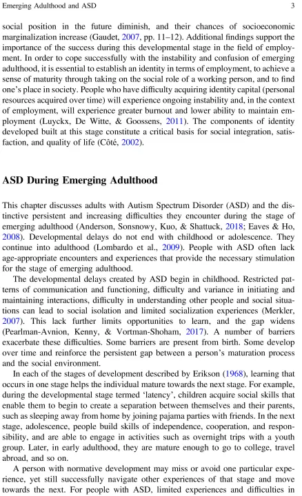 The distinctive stage of Emerging Adulthood in individuals with ASD