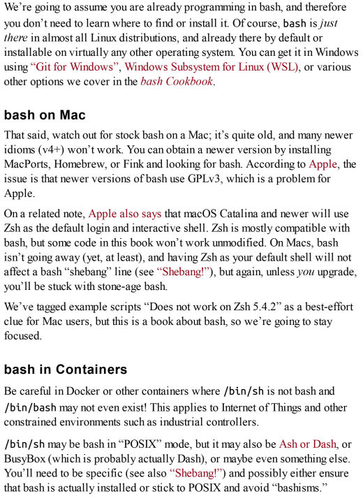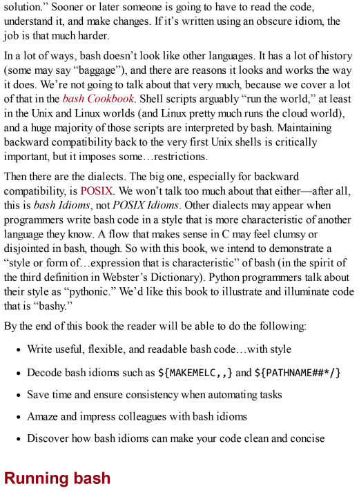 Shell scripts are everywhere, especially those written in bash compatible syntax, and it's extremely useful to be able to understand and write them, but they can be complex and obscure. Complexity is the enemy of security, but it's also the enemy of readability and understanding. With this practical book, you'll learn how to decipher old bash code and write new code that's as clear and readable as possible. Your future you will thank you.