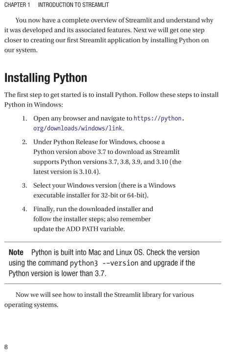 Sách Beginners Guide to Streamlit with Python Build Web-Based Data and Machine Learning Applications (sách keo gáy, bìa mềm)