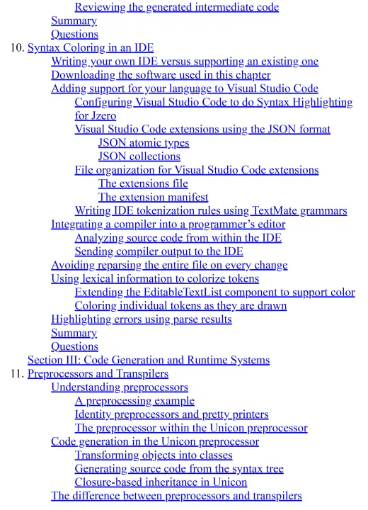 language design, compiler construction, preprocessors, transpilers, and