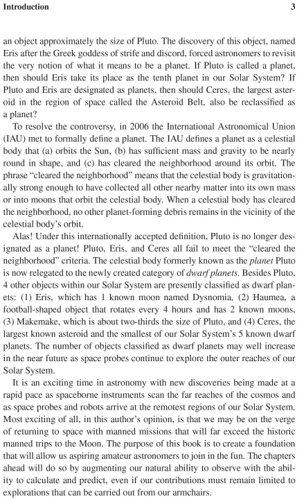 Our knowledge of the universe is expanding rapidly, as space probes launched decades ago begin to send information back to earth. There has never been a better time to learn about how planets, stars, and satellites move through the heavens. This book is for amateur astronomers who want to move beyond pictures of constellations in star guides and solve the mysteries of a starry night. It is a book for readers who have wondered, for example, where Saturn will appear in the night sky, when the sun will rise and set, or how long the space station will be over their location. In Celestial Calculations, J. L. Lawrence shows readers how to find the answers to these and other astronomy questions with only a personal computer and high school math. Using an easy-to-follow step-by-step approach, Lawrence explains what calculations are required, why they are needed, and how they all fit together.Lawrence begins with basic principles: unit of measure conversions, time conversions, and coordinate systems. He combines these concepts into a computer program that can calculate the location of a star, and uses the same methods for predicting the locations of the sun, moon, and planets. He then shows how to use these methods for locating the many satellites we have sent into orbit. Finally, he describes a variety of resources and tools available to the amateur astronomer, including star charts and astronomical tables. Diagrams illustrate the major concepts, and computer programs that implement the algorithms are included. Photographs of actual celestial objects accompany the text, and interesting astronomical facts are interspersed throughout.