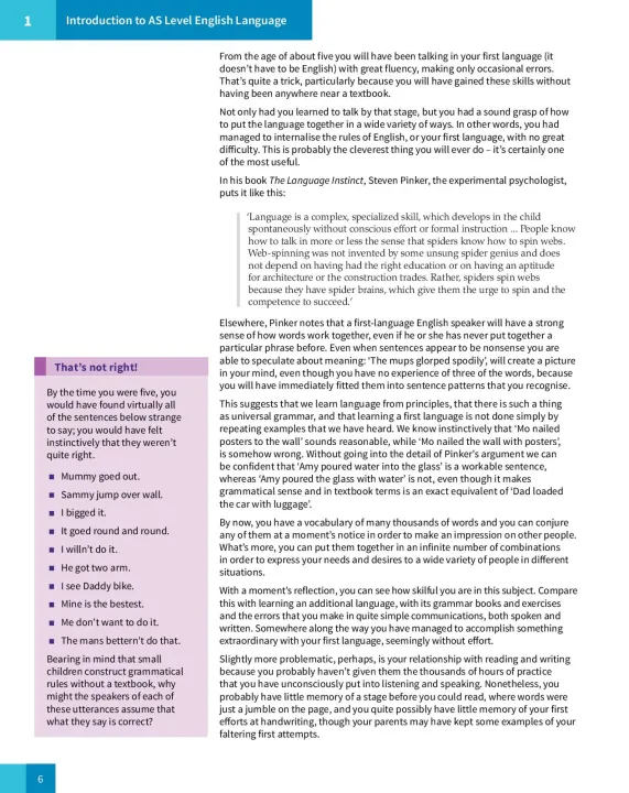 Equip your students for success with complete support for the latest Cambridge AS and A Level English Language syllabus (9093), for examination from 2021. Written by Cambridge examiners, the accessible, exam-focused approach embeds complex language skills and is packed with exam guidance, including support for the new Paper 3. Firmly instilling the analysis and application skills key to exam success, it includes practical guidance on how to develop and progress these capabilities. Plus, prepare students for future study with comprehensive coverage of trickier topics such as interpreting qualitative data and comparative commentary. Support students' learning with guided answers to Student Book activities on the accompanying support site.