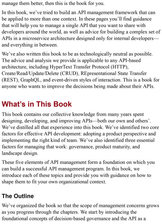 A lot of work is required to release an API, but the effort doesn't always pay off. Overplanning before an API matures is a wasted investment, while underplanning can lead to disaster. The second edition of this book provides maturity models for individual APIs and multi-API landscapes to help you invest the right human and company resources for the right maturity level at the right time.