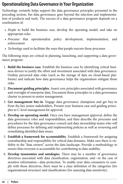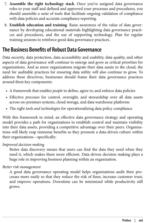• Data governance strategies addressing people, processes, and tools