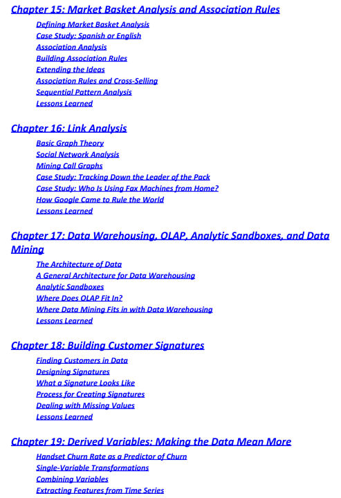 filtering, association rules, link analysis, survival analysis, and more