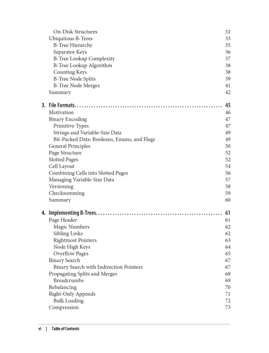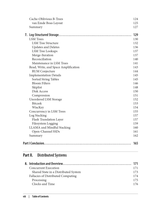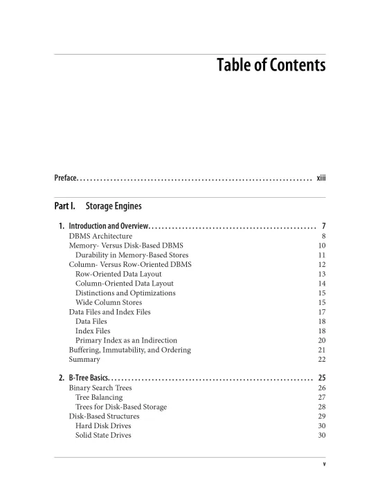 Throughout the book, you’ll explore relevant material gleaned from numerous books, papers, blog posts, and the source code of several open source databases. These resources are listed at the end of parts one and two. You’ll discover that the most significant distinctions among many modern databases reside in subsystems that determine how storage is organized and how data is distributed.