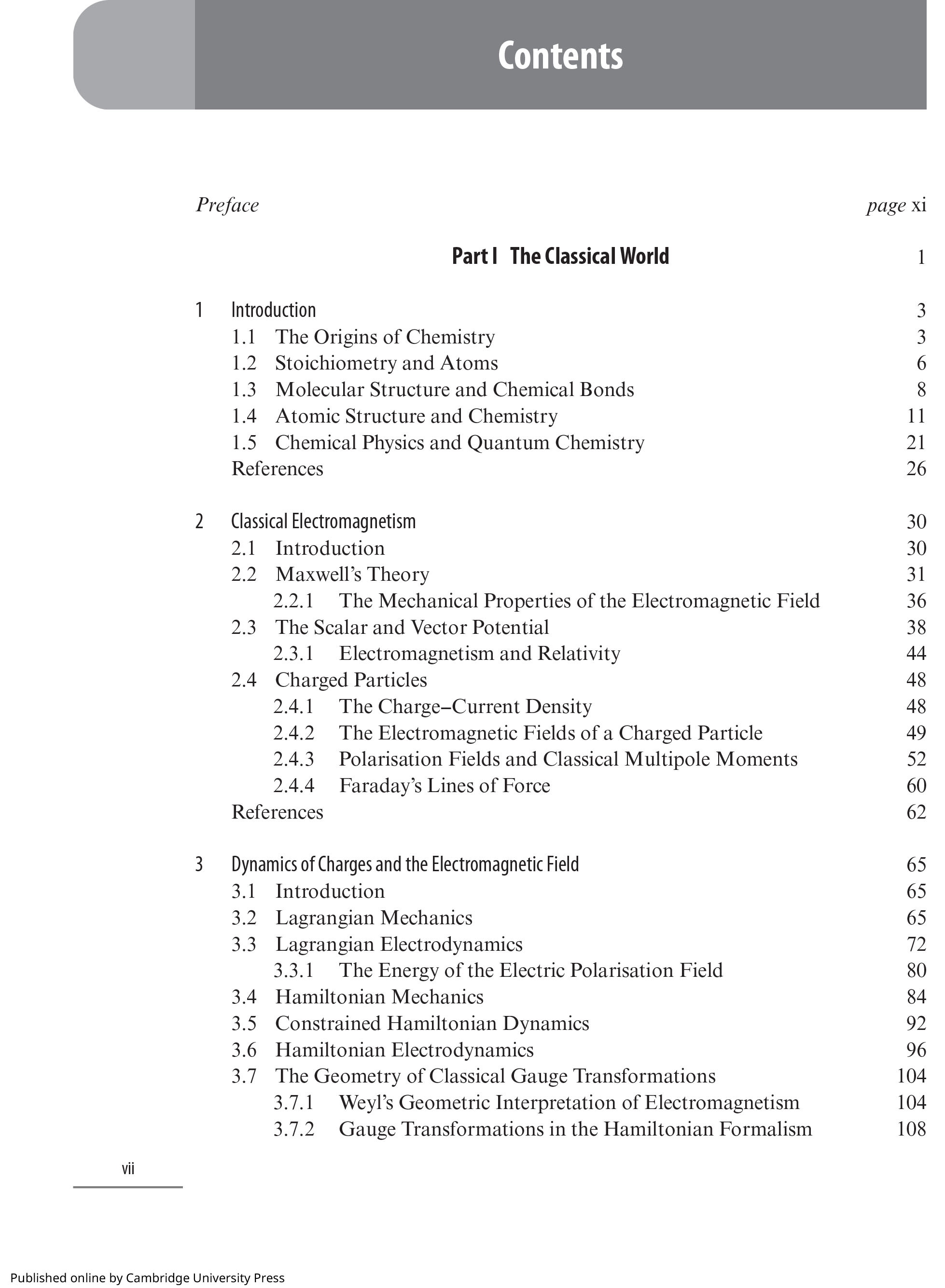 This book presents a comprehensive account of molecular quantum electrodynamics from the perspectives of physics and theoretical chemistry. The first part of the book establishes the essential concepts underlying classical electrodynamics, using the tools of Lagrangian and Hamiltonian mechanics. The second part focuses on the fundamentals of quantum mechanics, particularly how they relate to, and influence, chemical and molecular processes. The special case of the Coulomb Hamiltonian (including the celebrated Born-Oppenheimer approximation) is given a modern treatment. The final part of the book is devoted to non-relativistic quantum electrodynamics and describes in detail its impact upon our understanding of atoms and molecules, and their interaction with light. Particular attention is paid to the Power-Zienau-Woolley (PZW) representations, and both perturbative and non-perturbative approaches to QED calculation are discussed. This book is ideal for graduate students and researchers in chemical and molecular physics, quantum chemistry, and theoretical chemistry.
