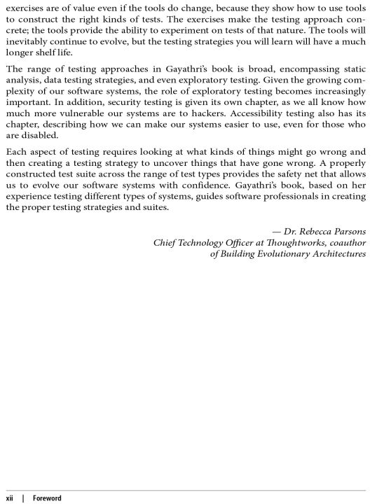 Author Gayathri Mohan offers examples of more than 40 tools you can use immediately. You'll acquire the skills to conduct exploratory testing, test automation, cross-functional testing, data testing, mobile testing, and visual testing, as well as tests for performance, security, and accessibility. You'll learn to integrate them in continuous integration pipelines to gain faster feedback. Once you dive into this guide, you'll be able to tackle challenging development workflows with a focus on quality.