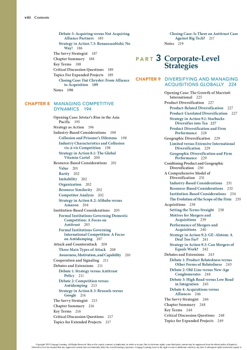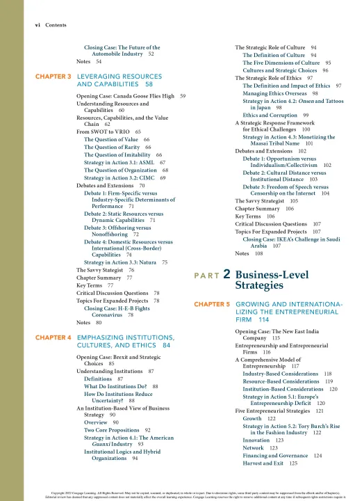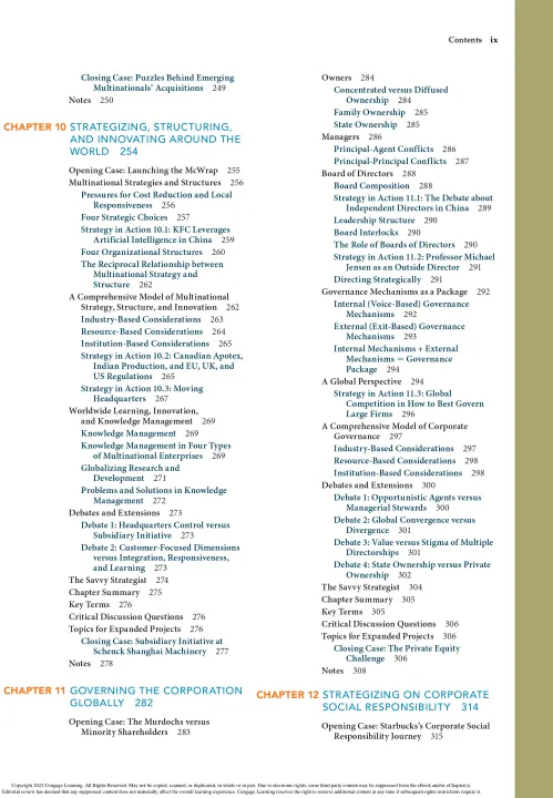 The world’s best-selling global business strategy text, Peng's GLOBAL STRATEGY, 5E uses a reader-friendly approach to help you master principles of strategic management from a truly global perspective. This edition emphasizes strategy around the globe using evidence-driven explanations with the latest research. A conversational style emphasizes the story behind the stories, while encouraging discussion. Timely debates address strategic issues, such as globalization versus de-globalization, offshoring versus non-offshoring and social media freedom of speech versus censorship. You also examine building an antitrust case against Big Tech and reducing income inequality via corporate social responsibility (CSR). Lively strategy-in-action boxes and numerous cases -- including brief, to-the-point integrative cases written with today’s time-starved students in mind -- present current topics in every chapter.