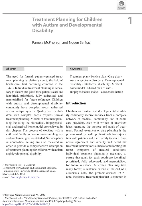 Handbook of Treatment Planning for Children with Autism Spectrum