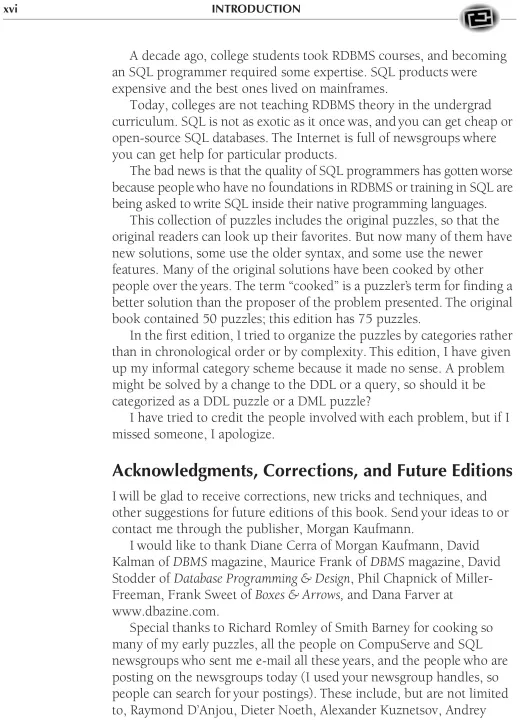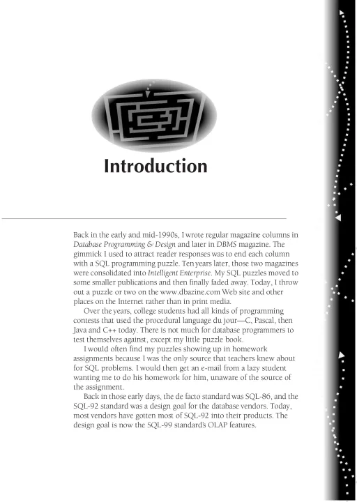 revision and expansion of his first SQL Puzzles book, he challenges you