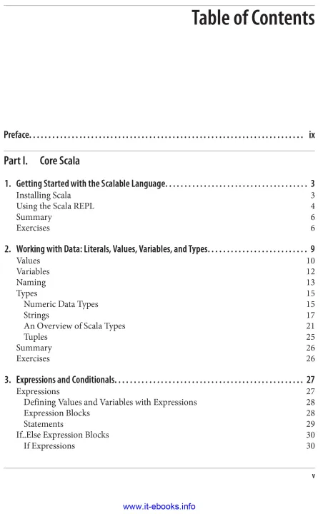 diagrams, examples, and exercises. You'll start with Scala's core types