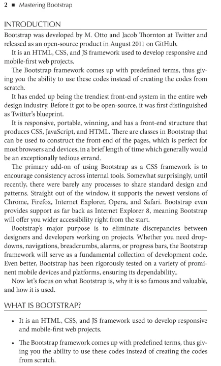 Mastering Bootstrap helps the reader master Bootstrap CSS framework for faster and robust front-end development.