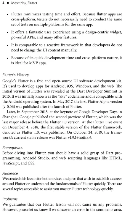 With Mastering Flutter, learning Flutter becomes straightforward, which will help readers undoubtedly advance their careers.