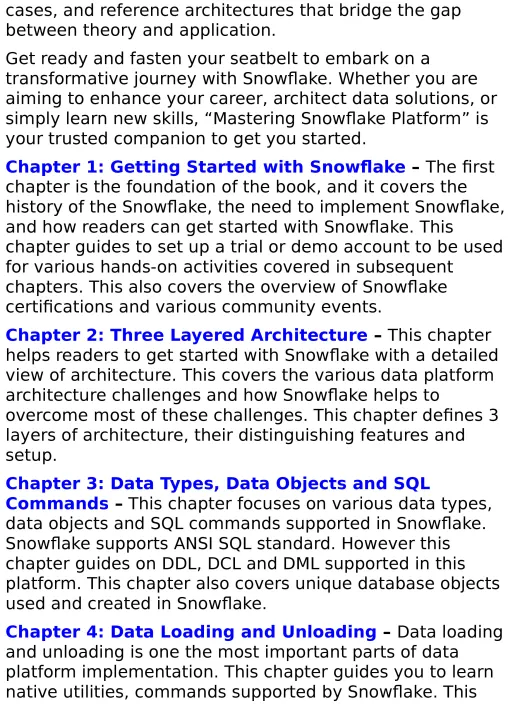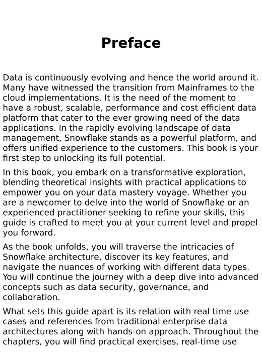 to Snowflake mastery KEY FEATURES ● Learn about Snowflake cloud-based