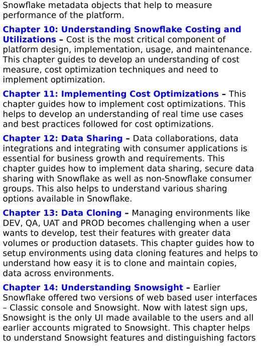 12. Data Sharing 13. Data Cloning 14. Understanding Snowsight 15.