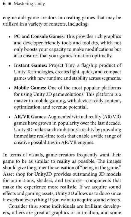 armed forces, Mastering Unity focuses on a broader usage for Unity. In