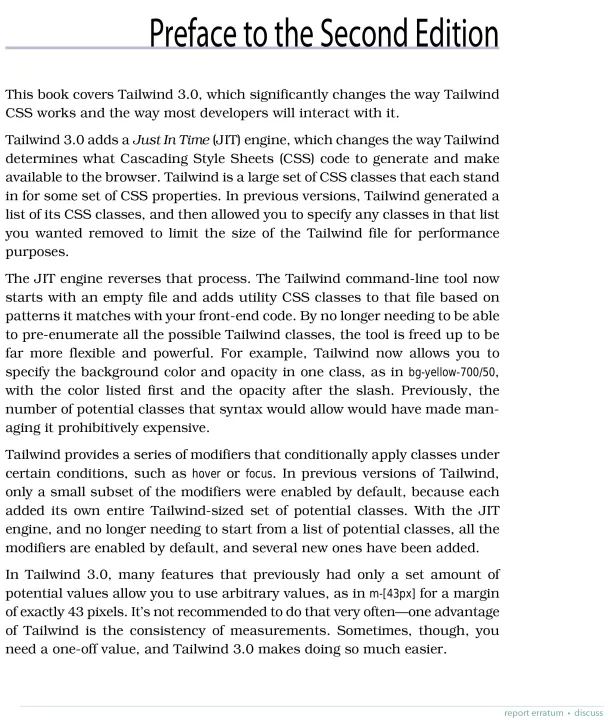 This new edition of the book covers Tailwind 3.0, which changes the way
