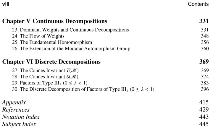 Operator-Valued Weights • Ch III Groups of Automorphisms • Ch IV Crossed