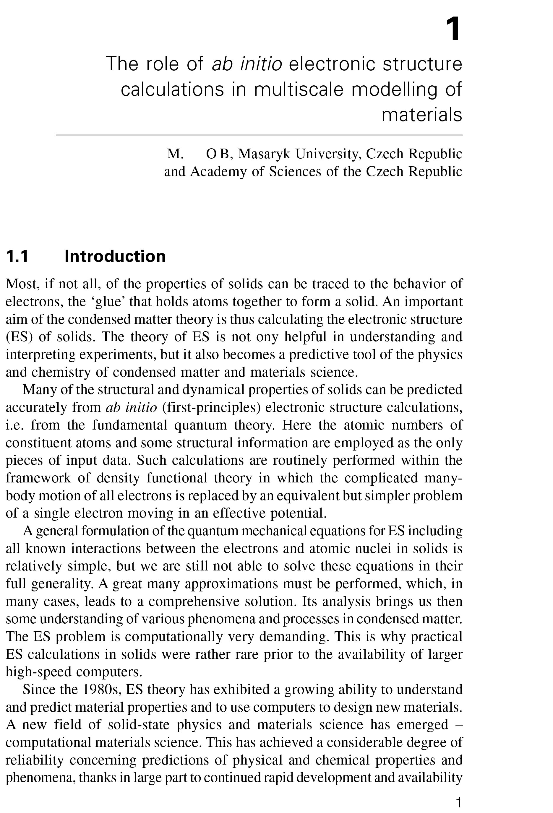 Written by an international team of contributors under the guidance of a distinguished editor, this book summarizes key techniques and their applications. The various chapters cover the spectrum of scales in modelling methodologies, including electronic structure calculations, mesoscale and continuum modelling. The book discusses dislocation behaviour and plasticity as well as the modelling of structural materials such as metals, polymers and ceramics. Multiscale materials modelling will be a valuable reference for both the modelling community and those in industry wanting to know more about how multiscale materials modelling can help optimise product and process design.