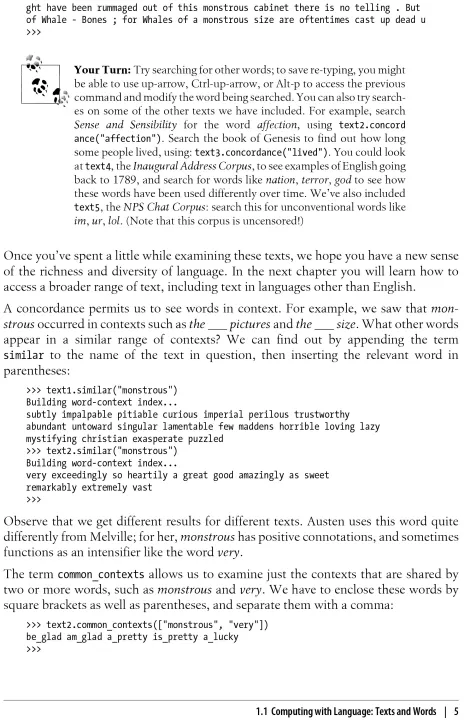 Python programs to analyze the structure and meaning of texts, drawing