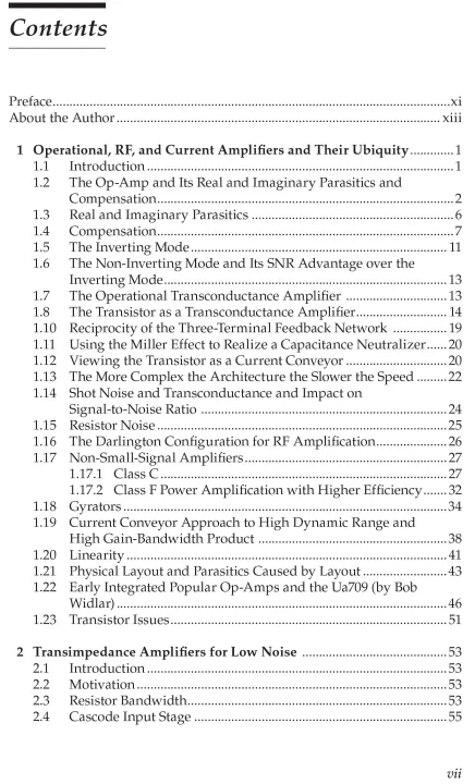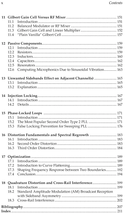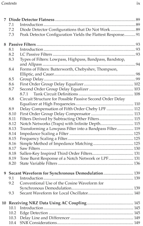 This is a book about real-world design techniques for analog circuits: amplifiers, filters, injection-locked oscillators, phase-locked loops, transimpedance amplifiers, group delay correction circuits, notch filters, and spectrum regrowth in digital radio frequency (RF) transmitters, etc.