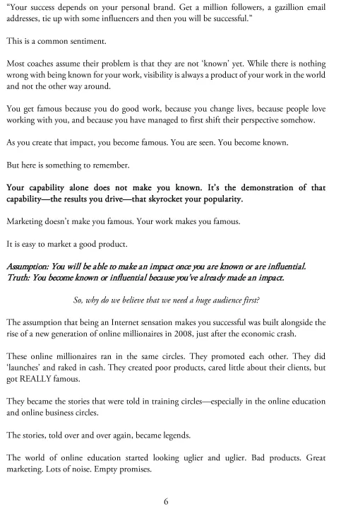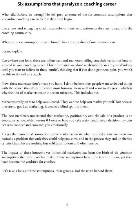 • Understand and overcome assumptions in the coaching business