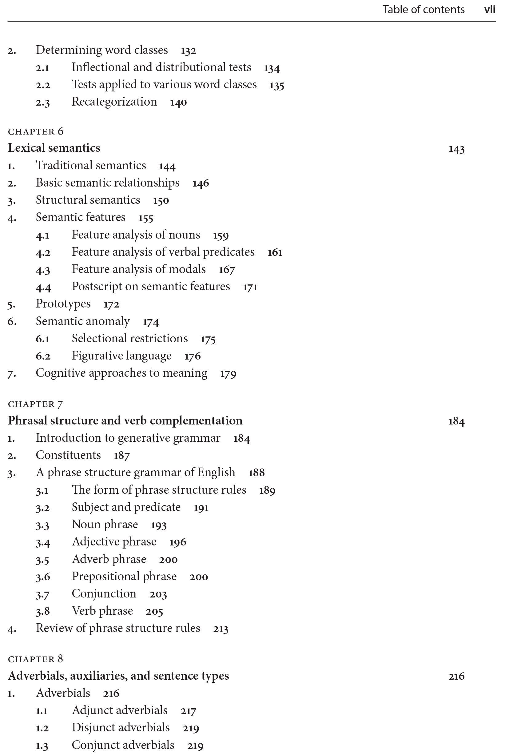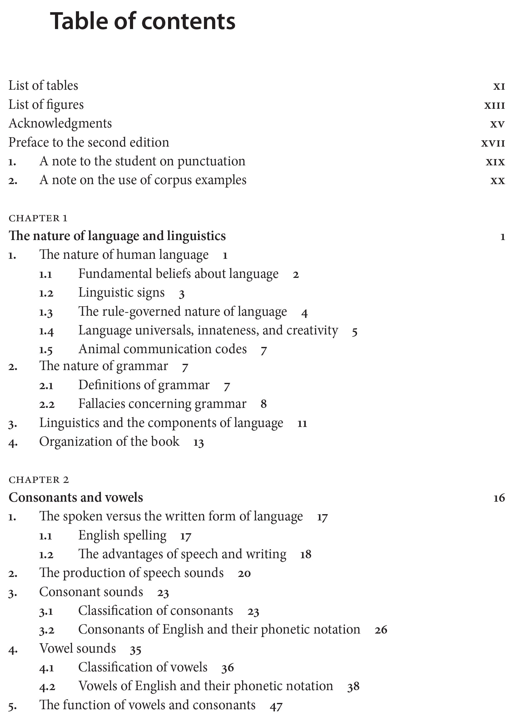 This text is for advanced undergraduate and graduate students interested in contemporary English, especially those whose primary area of interest is English as a second language, primary or secondary-school education, English stylistics, theoretical and applied linguistics, or speech pathology. The emphasis is on empirical facts of English rather than any particular theory of linguistics; the text does not assume any background in language or linguistics. In this newly revised edition numerous example sentences are taken from the Corpus of Contemporary American English. A full glossary of key terms, an additional chapter on pedagogy and new sections on cognitive semantics and politeness have been added. Other changes include: completely updated print references; web links to sites of special interest and relevance; and a revised, reader-friendly layout. A companion website that includes a complete workbook with self-testing exercises and a comprehensive list of web links accompanies the book. The website can be found at the following address: http://dx.doi.org/10.1075/z.156.workbook