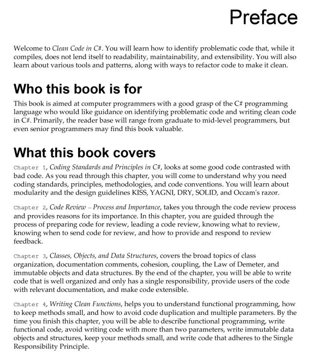 By the end of this clean code book, you'll have the developed skills you need in order to apply industry-approved coding practices to write clean, readable, extendable, and maintainable C# code.